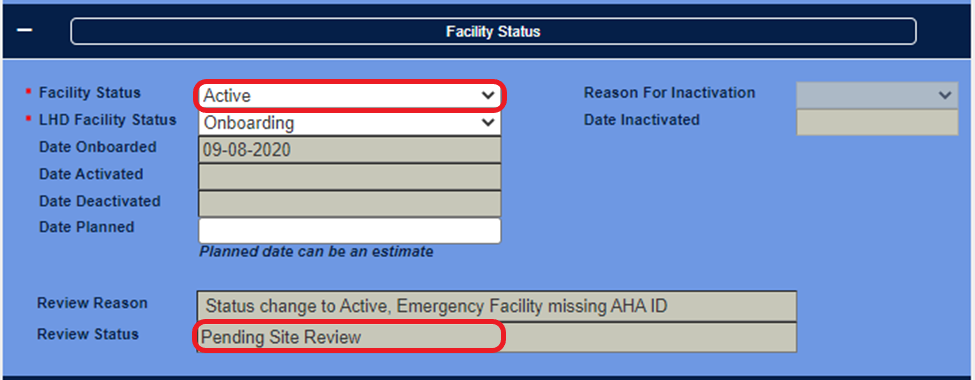 Facility Status: Onboarding