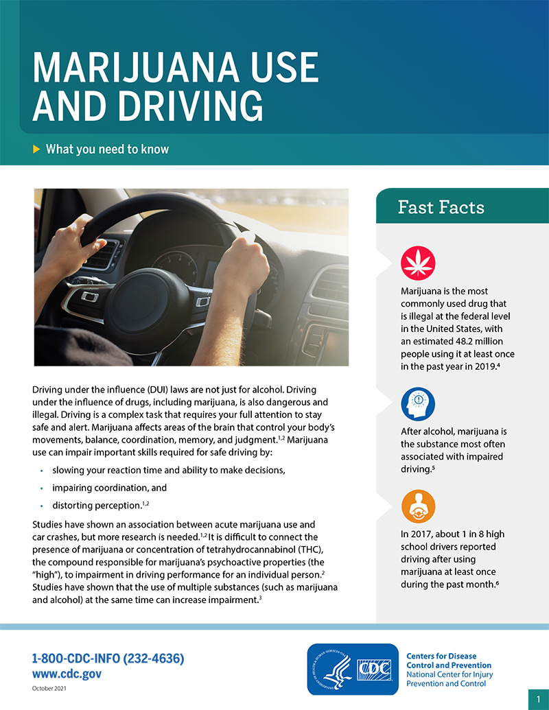 Fact sheet containing information on marijuana use, driving under the influence, and what one can do to prevent impaired driving.