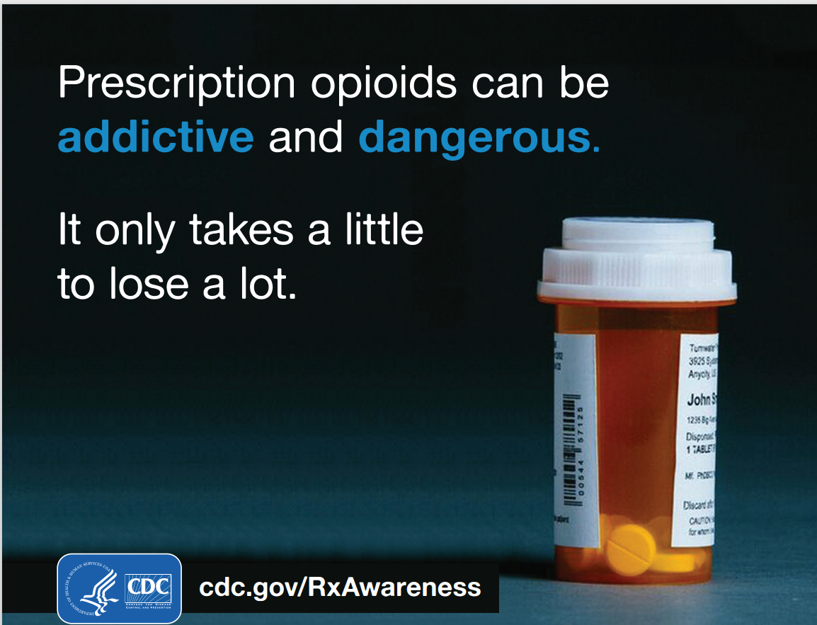 This newspaper advertisement can be used to help raise awareness about the risks of prescription opioids. It features the message, “Prescription opioids can be addictive and dangerous. It only takes a little to lose a lot.”