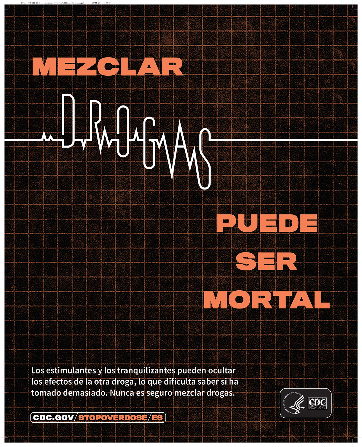 MEZCLAR Drogas Puede Ser Mortal.Los estimulantes y los tranquilizantes pueden ocultar los efectos de la otra droga, lo que dificulta saber si ha tomado demasiado. Nunca es seguro mezclar drogas.cdc.gov/stopoverdose/es