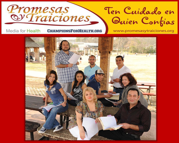 Our process engaged community members in identifying knowledge, attitudes, and behaviors typical of the community and in telling stories about health issues based on personal experiences. We brought together community talent and professionals in writing and producing a 48-episode serial drama, Promesas y Traiciones (Promises and Betrayals), that models preventive behaviors.
