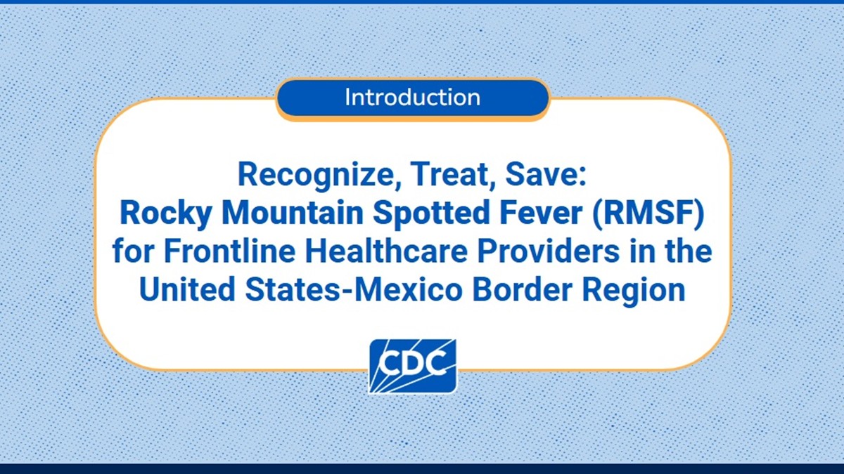The interactive web-based training module Recognize, Treat, Save: Rocky Mountain Spotted Fever for Frontline Healthcare Providers in the U.S. – Mexico Border Region is designed for professionals who treat patients from the U.S. – Mexico border region to help more rapidly recognize and treat the disease. The U.S. – Mexico border region has unique ecological and epidemiological factors contributing to high rates of RMSF.