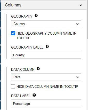 For most charts, the configuration options in the Columns panel are optional. For all data maps, there are required settings: