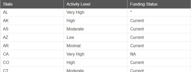Special classes can also be created to handle lookup values. For example, with the source data below, assume that the content owner wants a data map that color-codes the Activity Level, but wants to show NA in the legend (instead of Activity Level) whenever NA displays in the Funding Status. The solution is to create a special class with Funding Status as the Data Key (and NA as the value).