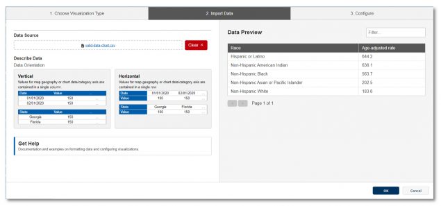 - Once you select your visualization type, you will be taken directly to the next tab, “Import Data”.