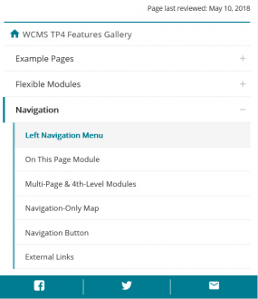 Each page in the WCMS can be set to display with or without a left navigation menu. While most sites have a single left navigation menu, you can set up different menus for sub-site folders.